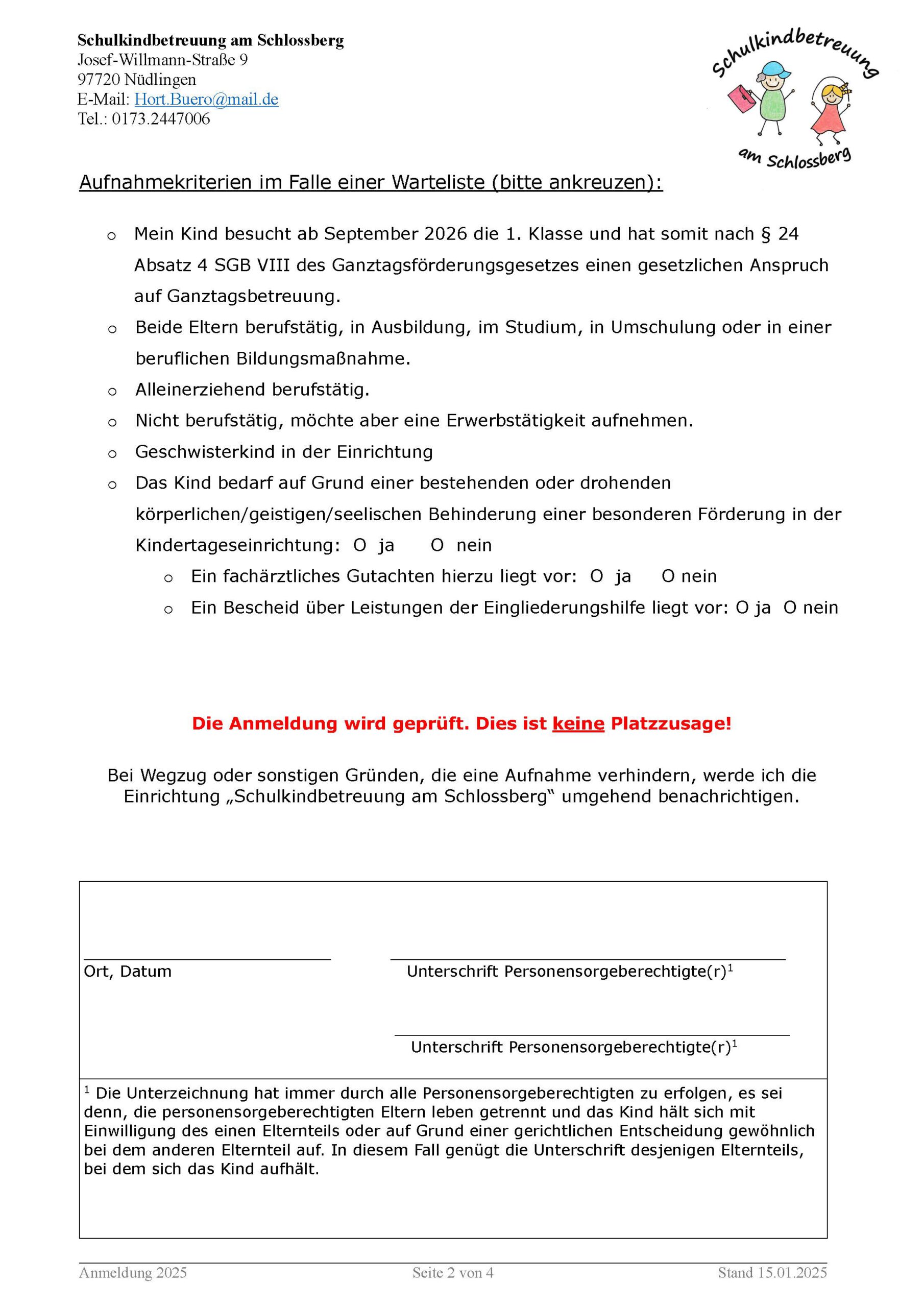 Informationen zur Voranmeldung für das Kita bzw Schuljahr 2025 2026
